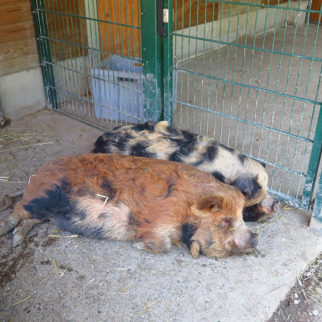 Кун кунов увидела впервые (новозеландские домашние свиньи) они мирно спали.