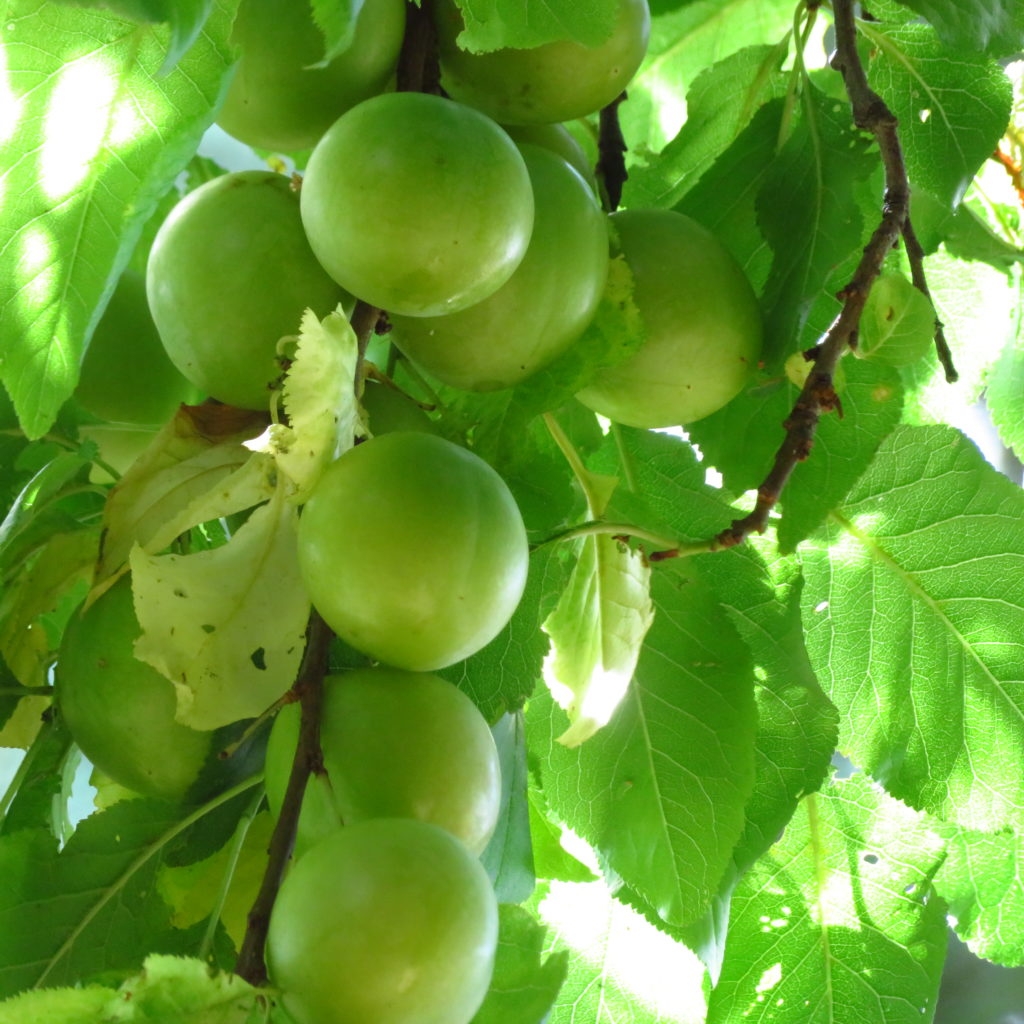 Много вкусной алычи! Дерево просто усыпано плодами! На любой вкус — поспелее с красным бочком или твердая зеленая. Наелась от души! 😋