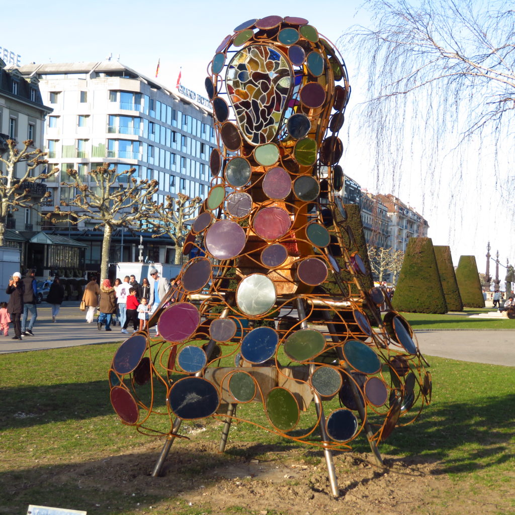 Скульптура «Dance enluminée» Roland Breitschmid. Установлена на набережной Мон-Блан