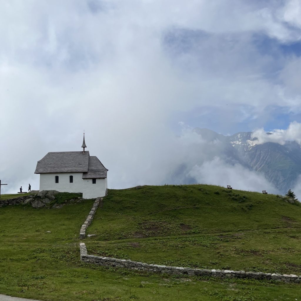 Выхожу и вижу только туман. Люди надевают куртки, воздух прохладный. Печально, неужели не увижу ледник. Зная, что в горах погода очень переменчива, надеюсь на чудо. И тут оно произошло, облака рассеиваются и я вижу ледник. Алечский ледник, самый большой ледник в Альпах, протяжностью около 24 км, является объектом Всемирного наследия ЮНЕСКО.