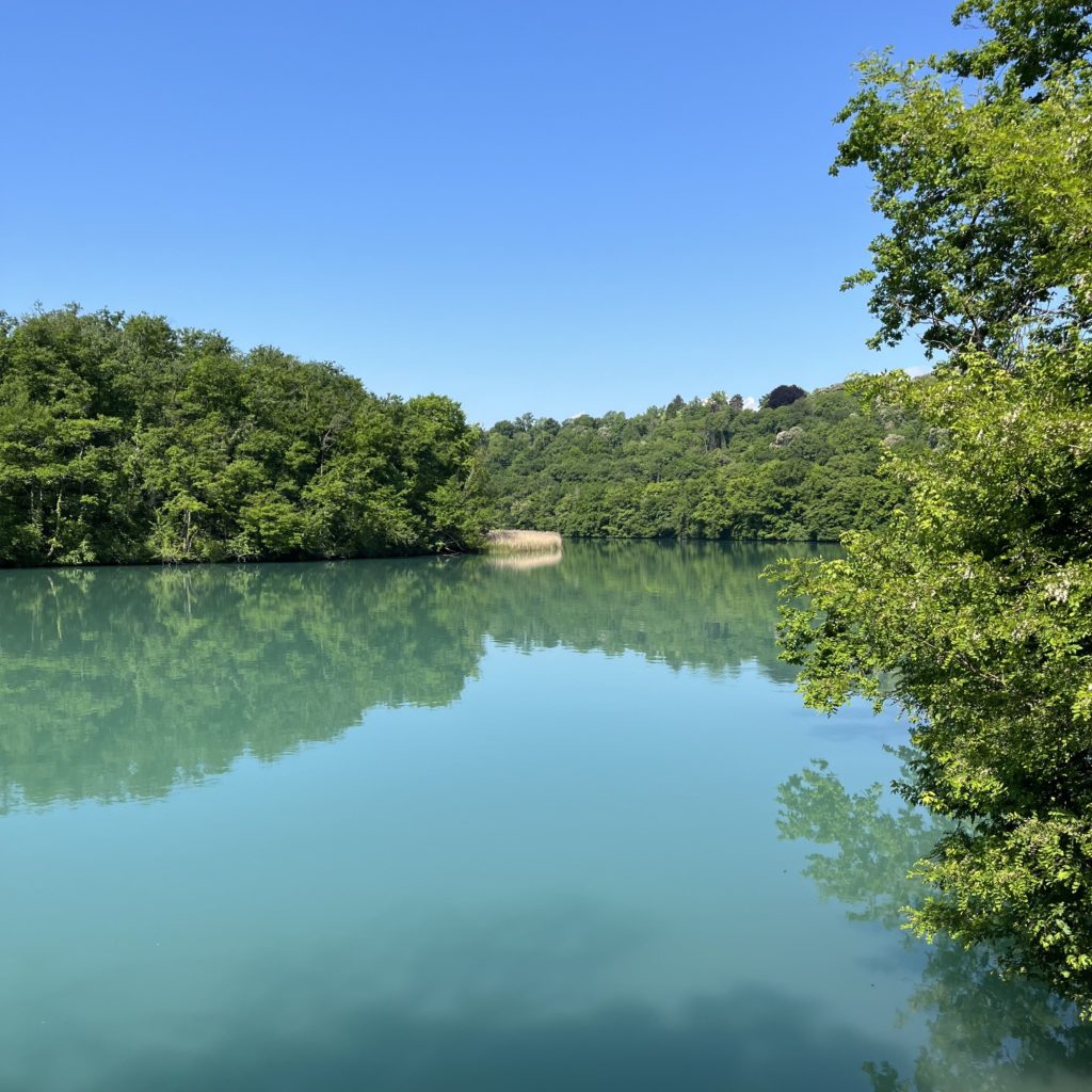 Солнечное, тёплое утро. Надела кроссовки, улыбку и отправилась в сторону Lignon-Cité, чтобы открыть для себя новые, неизведанные уголки природы. Пара шагов от остановки, и вот уже передо мной лес: сочная зелень, щебечут птицы. Вдыхаю свежий воздух…. и тут передо мной предстает река Рона, в водах которой отражаются облака. Любуюсь, затаив дыхание!